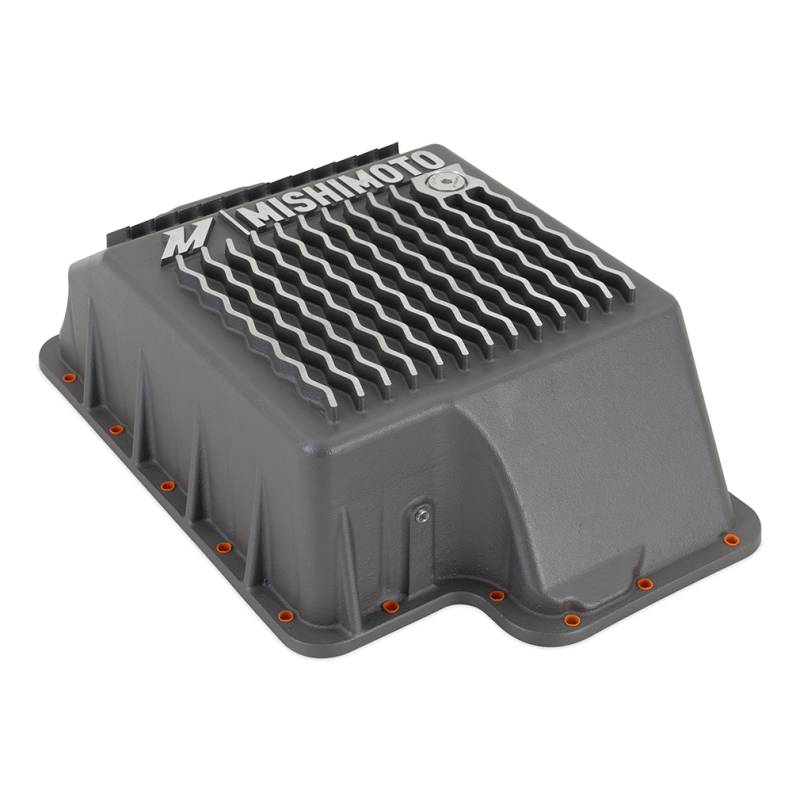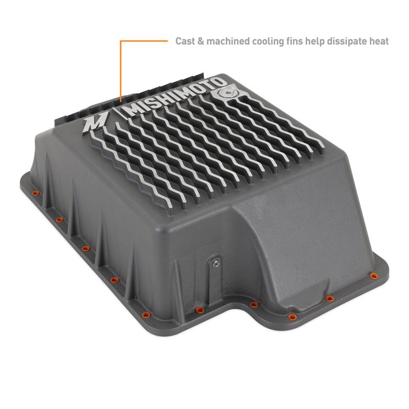 This Mishimoto Aluminum Transmission Pan is a direct-fit high-performance upgrade for your 1989-2010 Ford 7.3L 6.0L and 6.4L Powerstroke. Cast from high-quality aluminum and powder coated Gunmetal Gray our transmission pan is a robust and long-lasting upgrade for your vehicle's transmission. With a sleek design and bottom ribs this pan not only adds to the overall aesthetic of your truck but also provides improved cooling performance.----This transmission pan features internal baffles that reduce sloshing and enhance heat dissipation resulting in smoother transmission performance. Our casting features a precision-machined sealing surface ready to accept either a factory-style gasket or sealant of your choice (not included). Additionally the Mishimoto 1989-2010 Ford Powerstroke Aluminum Transmission Pan adds an extra 6.6 quarts of ATF to help maintain optimal transmission operation.----Fed up with the frustration of trying to hold up a transmission pan with one hand while threading the fasteners in with the other? Mishimoto has you covered with pre-installed bolt retainers that hold the fasteners in the pan allowing you to easily thread the bolts without dropping them on the ground your head or worse that pan of nasty transmission fluid you just drained. Additionally our pan comes equipped with a magnetic drain plug for easy draining and a 1/8-inch NPT port and plug for temperature sensors to make servicing your transmission and monitoring temperatures a breeze.----This direct-fit upgrade offers affordable durability and helps maintain smooth transmission operation ensuring a long life for your transmission. Like all Mishimoto products this transmission pan is backed by the Mishimoto Lifetime Warranty.