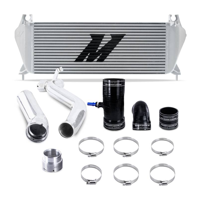 TechSpec Includes: (1) Mishimoto Performance Bar-and-Plate Intercooler--(1) Aluminum Hot-Side Intercooler Pipe--(1) Aluminum Cold-Side Intercooler Pipe--(1) CNC-Machined Aluminum Hot-side Pipe Adapter--(2) DuraCore Hot-Side Couplers--(1) DuraCore Cold-Side Coupler--(6) High-Torque Worm Gear Clamps--Bypass Valve Mounting Hardware--Intercooler Mounting Hardware--Mishimoto Lifetime Warranty