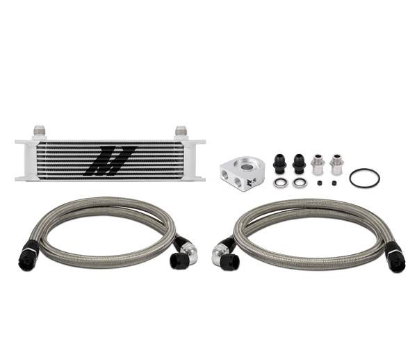 TechSpec Includes: 10-Row Oil Cooler--4ft Stainless Steel Braided Hose w/ -10AN fittings--One straight fitting and one 90 degree swivel fitting--5ft stainless Steel Braided Hose w/ -10AN fittings--One straight fitting and one 90 degree swivel fitting--M20 Thermostatic Sandwich Plate---10AN Fittings--Dowty Oil Seals--Large O-Ring--1/8-in NPT Allen Key Plugs--Sandwich plate adapters--Mishimoto Lifetime Warranty