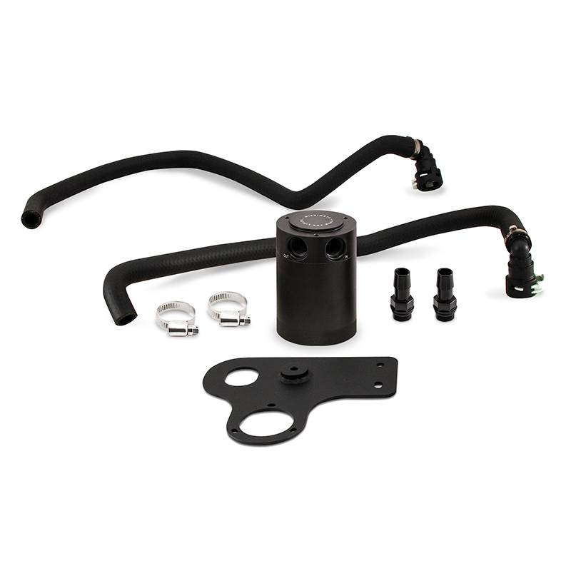 Your 5.0 Coyote engine needs protection now more than ever in your 2018-2023 Mustang GT. With the introduction of direct injection along with more power in Ford's 3rd Gen Coyote the intake tract is more at risk to the dangers of blow-by. Engine blow-by can cause an oily mess inside intake manifolds and decrease octane levels potentially increasing chances of detonation. Mishimoto's 2018-2023 Mustang catch can kit features a patent-pending 2-port Compact Baffled Oil Catch Can with a 50-micron bronze filter and an internal baffle to better separate oil from the crankcase vapors. Two direct-fit hoses and an application-specific bracket make for a quick and simple installation. Reducing blow-by becomes even more important with the addition of forced induction so this 2018-2023 Mustang catch can kit mounts away from most intake and supercharger kits to make room for some more horses. When you're on the road with that 5.0L Coyote you'll have the peace of mind knowing that blow-by isn't stripping away any of your treasured HP. To back up Mishimoto's superior craftsmanship each 2018-2023 Mustang catch can kit comes with the renowned Mishimoto Lifetime Warranty! Our catch cans are different from most air-oil-separator (AOS) systems on a few levels. First our catch cans are not heated. This means that all of the blow-by is able to condense in the can including low-octane oil vapors and contaminated fuel vapors. Most AOS systems also drain the blow-by back into the oil pan while our catch cans trap the blow-by and keep it out of the engine permanently. If you've seen what We've seen in the bottom of our catch cans you won't want that draining back into your oil either.