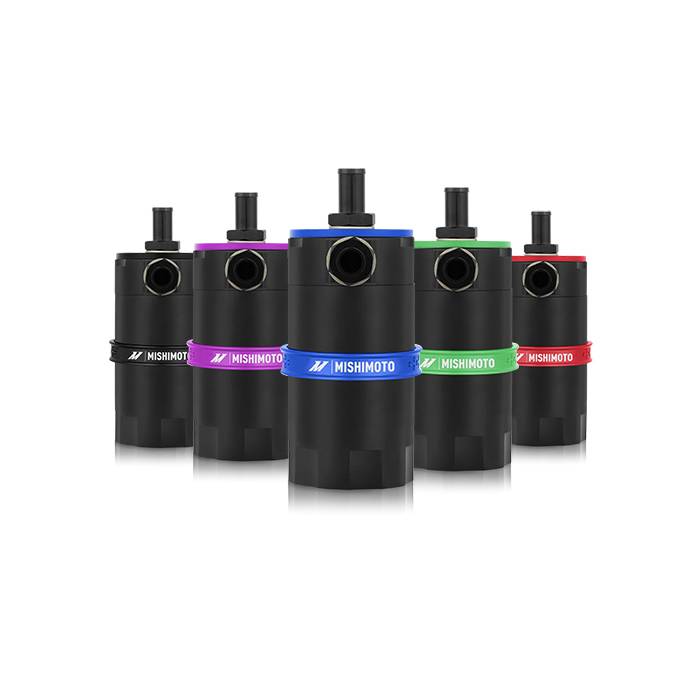 Mishimoto is proud to announce the release of our Baffled Oil Catch Can.With over a year of research and development time Mishimoto has created the most effective oil catch can on the market.The Mishimoto Baffled Oil Catch can was designed to separate oil particles from the PCV air that would normally have just been routed back to your intake.Custom grooves in the catch can's inlet turbulates the air longer and ensures all the oil sinks to the bottom of the can leaving nothing but clean air to pass through the 40 micron bronze filter to the intake.An internal baffle keeps the collected oil from splashing around under race conditions.The 100-percent billet 6061 aluminum can accepts inAN fittings at the intlet outlet and drain area allowing over 25 possible configurations.For maximum fitment options the top cog mounting setup allows the can to be mounted from multiple angles.To make maintenance easy the drain plug can be removed to allow for inAN return to the oil pain.The can is also 100-percent washable unlike many other cans that require you to replace your filtration system.The Mishimoto Baffled Oil Catch Can is available in a variety of colors as well so it will be sure to match your style and taste!