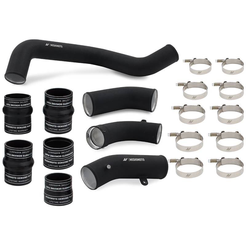 TechSpec Includes: (3) Aluminum Intercooler Pipes--(1) Aluminum Intercooler Pipe w/ O-Ring and Spring Clip--(5) Silicone Boots with DuraCore Technology--(10) Constant-Tension T-Bolt Clamps--Mishimoto Lifetime Warranty