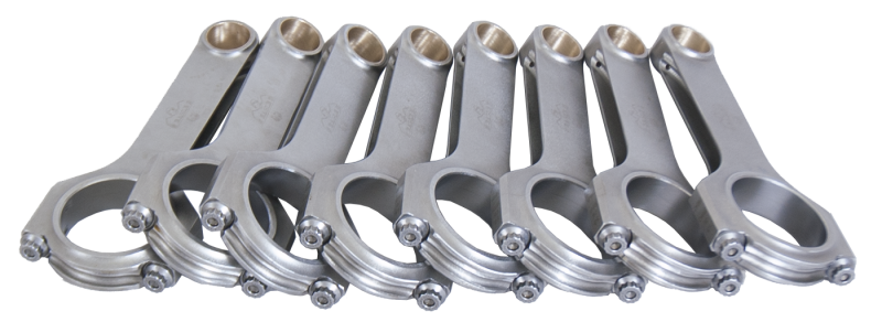 Forged 4340 steel H-Beam connecting rods are forged from a two-piece forging and feature a fully machined and shot-peened surface. Sizing is held to exact tolerances. Sold as a weight-matched set. Recommended for competition use.