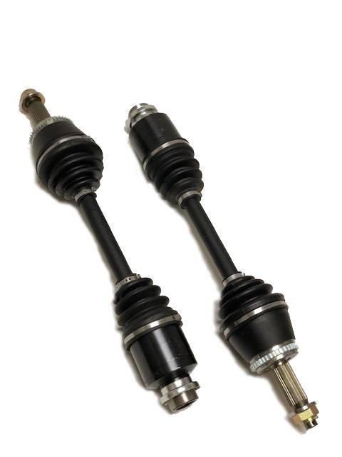 These are the Level 2 Front axles for the Evo VII / VIII / IX. The Level 2 axles for the Evo feature aerospace grade 32 spline torsional axle bars. With our special double temper process, billet inner and outer CV's and, direct bolt-in to the factory hubs. We have recently updated the design with a new 2-piece outer CV housing and a 300m stub shaft. These axles are complete and ready to install. The price listed is for both axles. Warranty: 1-Year