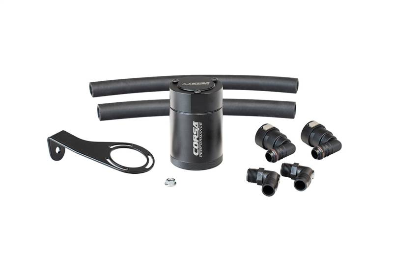 CORSA Performance's oil catch cans are the latest in a line of performance parts designed to maximize vehicle performance and longevity. Made from 6061 aluminum and featuring a multi-stage oil separation system CORSA Performance oil catch cans work to eliminate blow-by of gas water oil vapors and particulates from the airpath. By reducing the impacts of blow-by oil catch cans prevent damage to sensitive intake components and helps reduce carbon build-up on valves that over time reduce engine performance. Each vehicle specific oil catch can has been designed with OEM style quick disconnect fittings premium automotive-grade hoses and upgraded components to ensure your vehicle runs at peak performance. Through careful design CORSA engineers have mounted each oil catch can in an easily accessible yet safe location allowing for ease of serviceability.