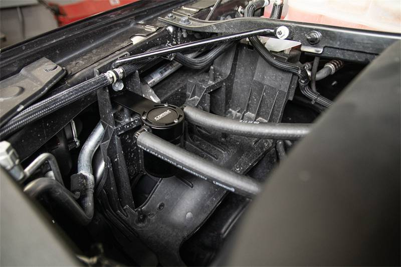CORSA Performance's oil catch cans are the latest in a line of performance parts designed to maximize vehicle performance and longevity. Made from 6061 aluminum and featuring a multi-stage oil separation system CORSA Performance oil catch cans work to eliminate blow-by of gas water oil vapors and particulates from the airpath. By reducing the impacts of blow-by oil catch cans prevent damage to sensitive intake components and helps reduce carbon build-up on valves that over time reduce engine performance. Each vehicle specific oil catch can has been designed with OEM style quick disconnect fittings premium automotive-grade hoses and upgraded components to ensure your vehicle runs at peak performance. Through careful design CORSA engineers have mounted each oil catch can in an easily accessible yet safe location allowing for ease of serviceability.