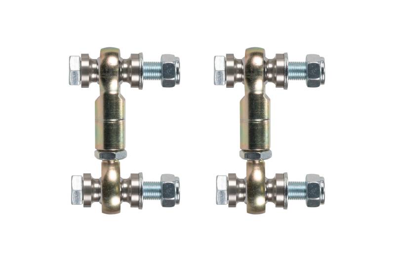 Sway bar/stabilizer end links connect the sway bar to a fixed point on the suspension and are designed to transfer forces between the suspension and the sway bar. Adjustable end links are an upgrade over standard non-adjustable end links that allow for the removal of potential sway bar interference and preload on vehicles with lower ride heights. Removing sway bar preload allows quick adjustment on bars with multiple settings. A properly set up sway bar leads to less body roll and thus improved handling.